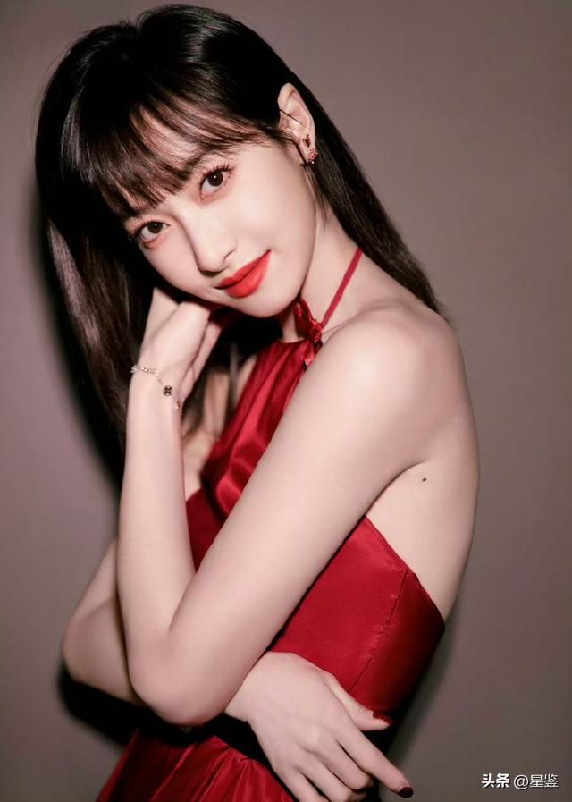 她的配饰选得特别克制,只搭了细款银手链、小巧红钻耳钉,再配上带钻链条的尖头黑高跟,用冷感金属和黑色单品平衡了红裙的艳丽,避免了用力过猛的俗气感。齐刘海直发也选得恰到好处,利落又减龄,和成熟的红裙碰撞出“甜御交织”的反差感,比长发更显清爽干练。