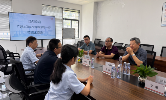 随后,校企双方举行座谈。企业方领导首先对校方的到访表示热烈欢迎,并详细介绍了比亚迪近年来的迅猛发展趋势:作为全球新能源汽车行业的领军企业,比亚迪凭借“技术为王、创新为本”的发展理念,已实现全产业链布局与核心技术的自主可控,销量持续领跑全球市场。他特别指出,第十一事业部作为比亚迪体系内的核心制造单元,主要负责品牌旗下仰望、腾势等高端及豪华车型的组装生产,代表了比亚迪最高的制造工艺与品质标准。他期待通过与广州华夏职业学院的合作,共同为行业孵化更多熟悉高端制造流程的专项人才。